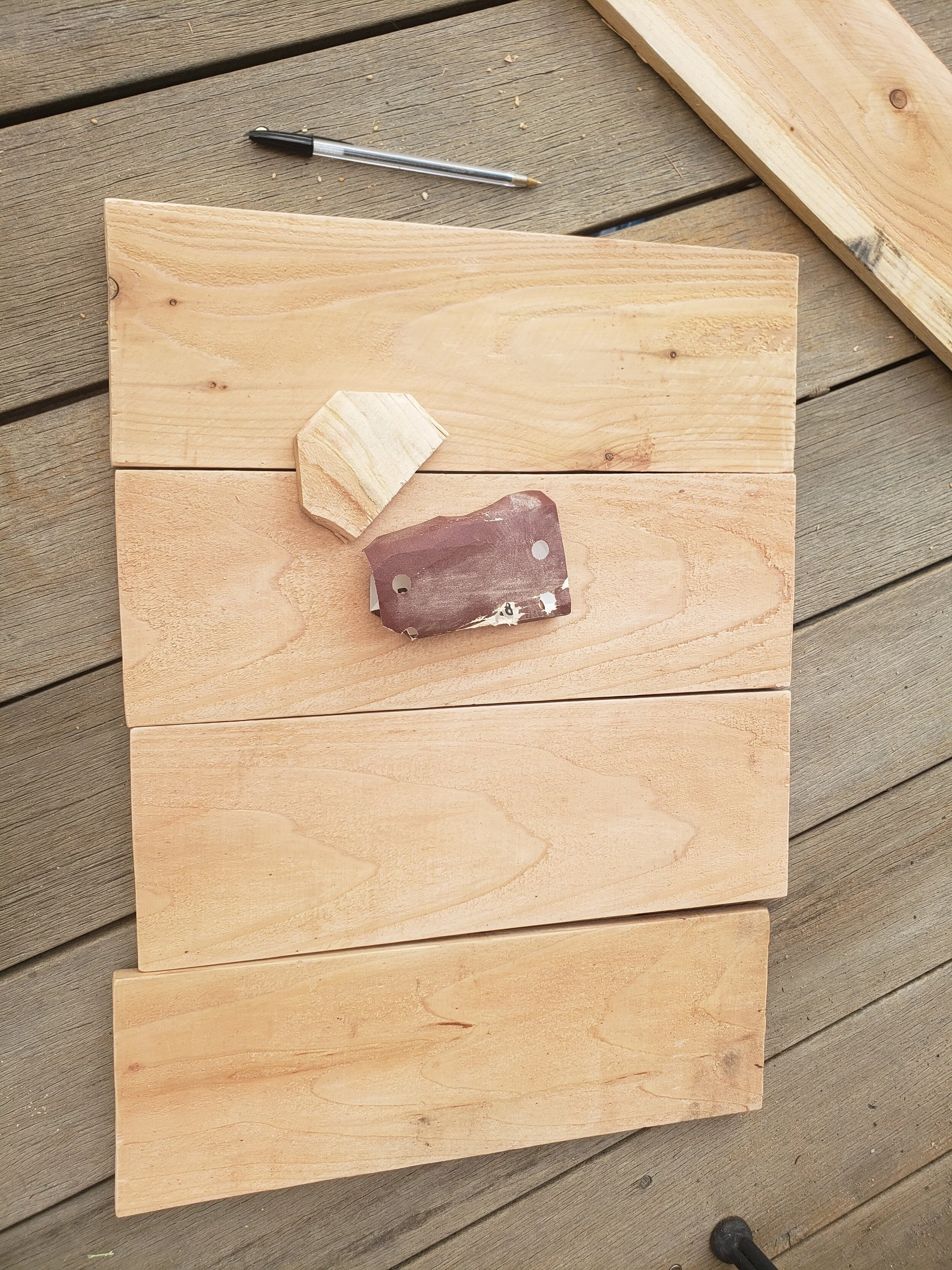 Cut wood to size. I use cheap fence posts from the Home Depot. I like pieces with texture so the wood look comes through.