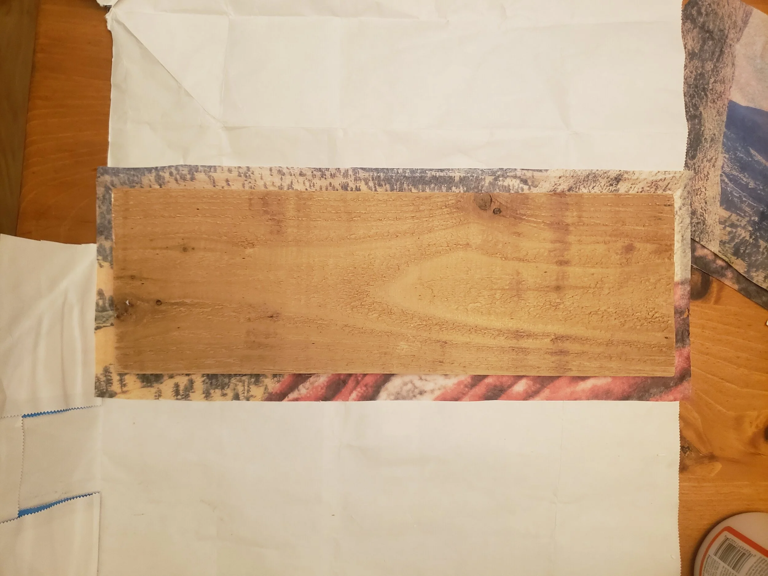 Trim each strip. Get the modge podge out because that’s what will be used to mount the photo to the wood.