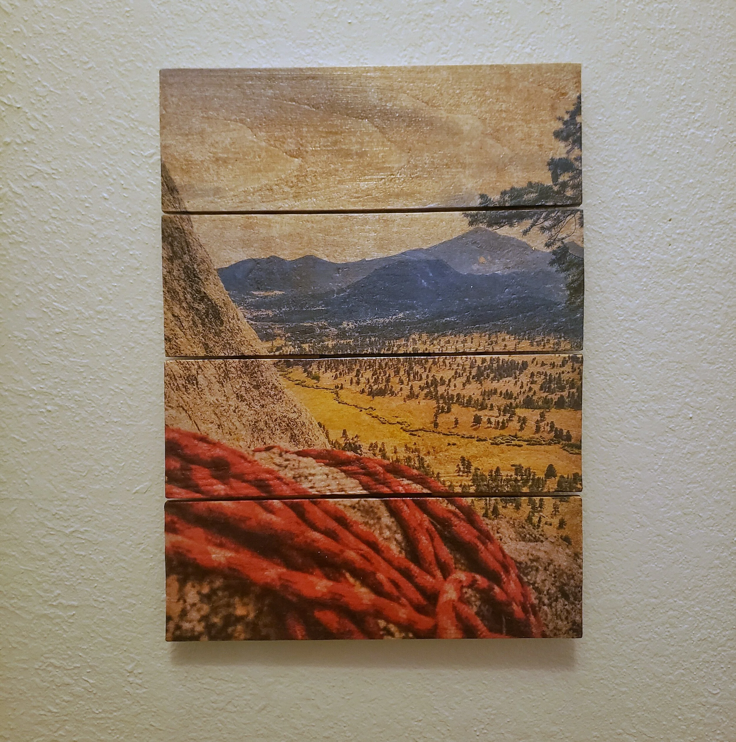 (Step 0 - Go do a cool thing worth putting on your wall). Do a lot of surprisingly complicated math in to get your crop lines right in Photoshop. Also make some small test prints to make sure your colors are right (they look obnoxiously bright in on the computer, but good when printed).